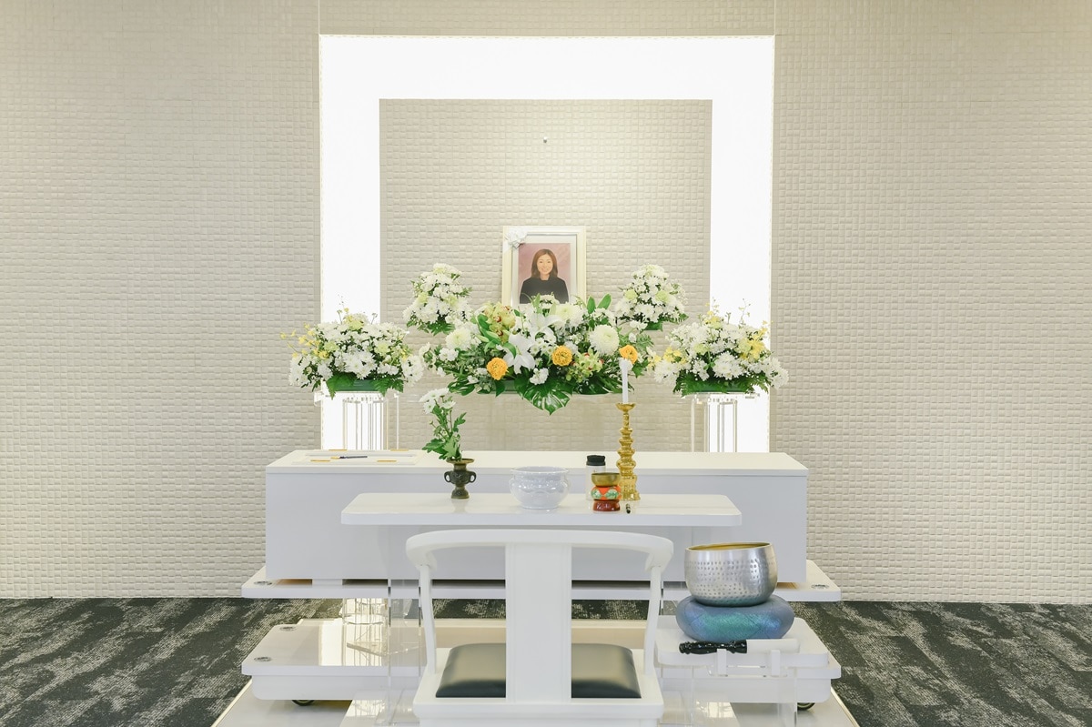 フラワーデザイナーにより好きな花で彩ったもの、趣味や特技といった人柄をイメージしたものなど一人一人に合った祭壇を創り上げます。