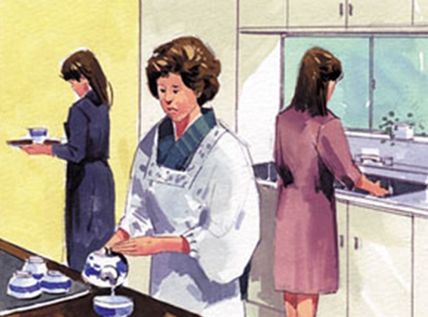 01. 台所を片付け湯茶の準備をします。