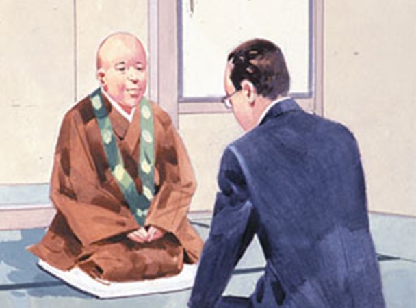 01. 式典前に僧侶に挨拶をします。