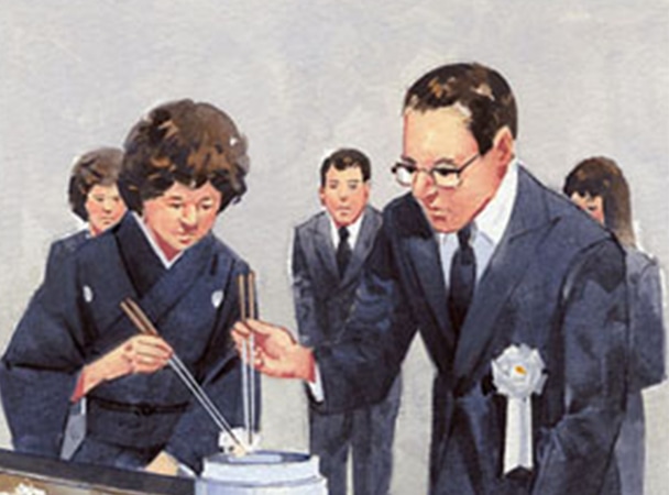 01. 骨上げは作法に従い収骨します。