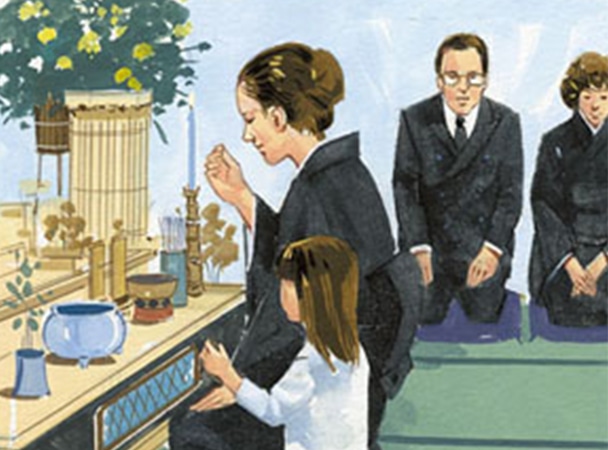 - ②お寺様を招き、初七日法要を行います。